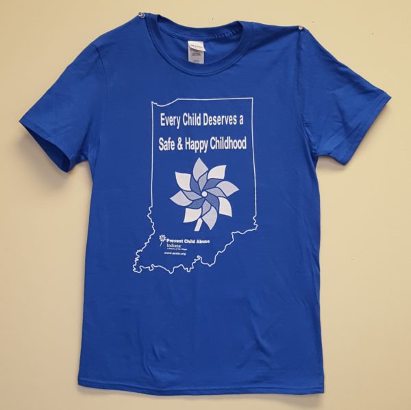 Gildan SoftStyle Ring Spun Royal Blue T-Shirt made with100% cotton with a digital process imprint of Indiana PCA Pinwheel Shirt design on the front of the shirt. Sizes tend to run slightly smaller so order accordingly.